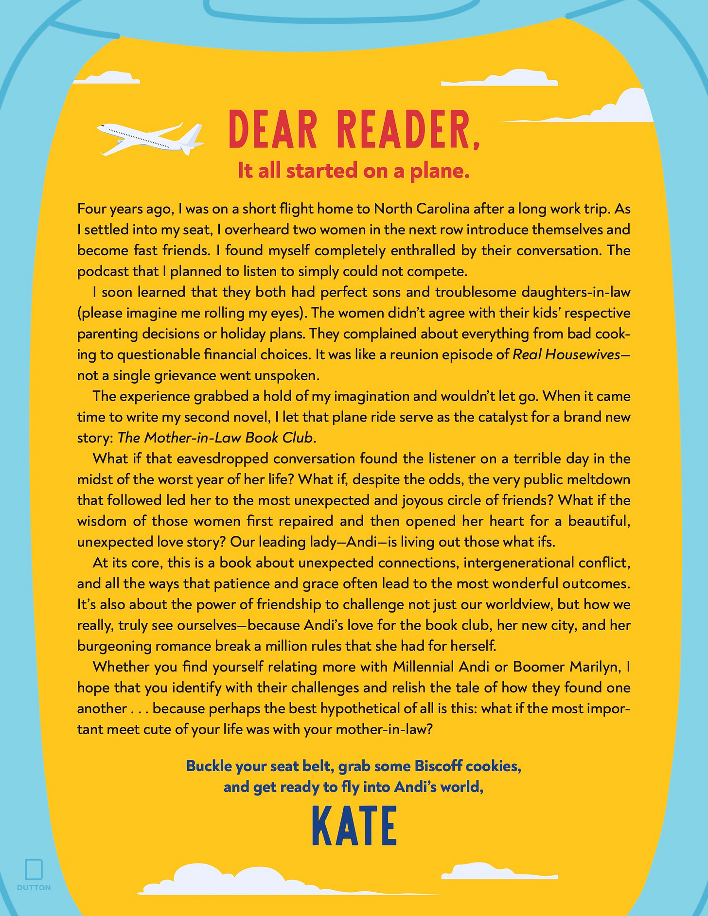 The experience grabbed a hold of my imagination and wouldn’t let go. When it came time to write my second novel, I let that plane ride serve as the catalyst for a brand new story: The Mother-in-Law Book Club.